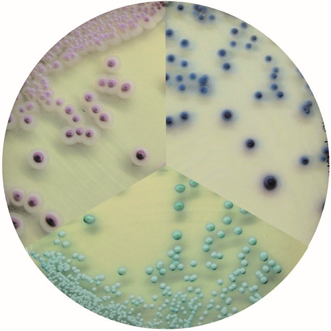 应用: 对于临床诊断,可检测任何样本类型,白色念珠菌菌落呈绿色,克柔念珠菌菌落呈紫粉色,热带念珠菌菌落呈蓝色。